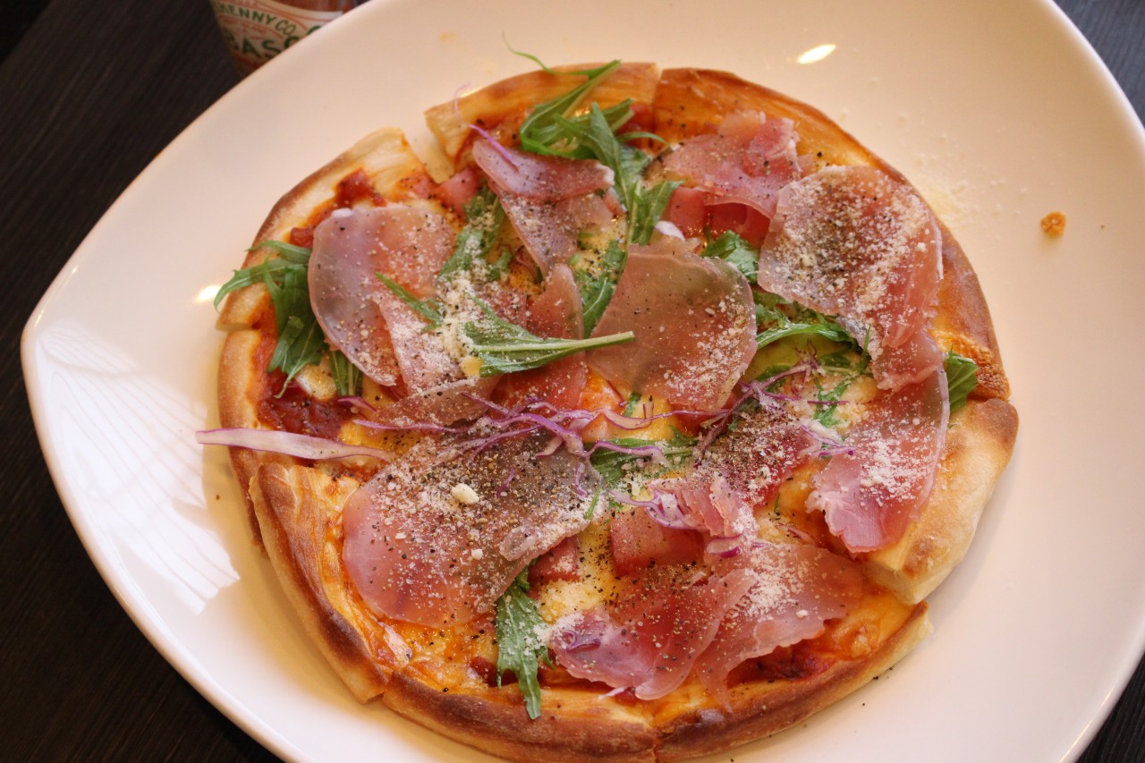 | サラダピザ クリスピー生地にサラダがたっぷりのっている、とてもヘルシーなピザです。 |